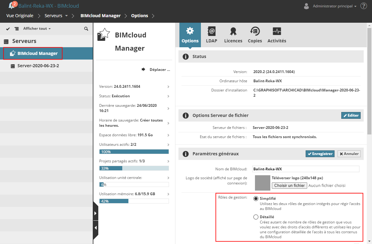 BIMcloud propose deux approches en matière de rôles administratifs sur BIMcloud : Simplifié et Détaillé.