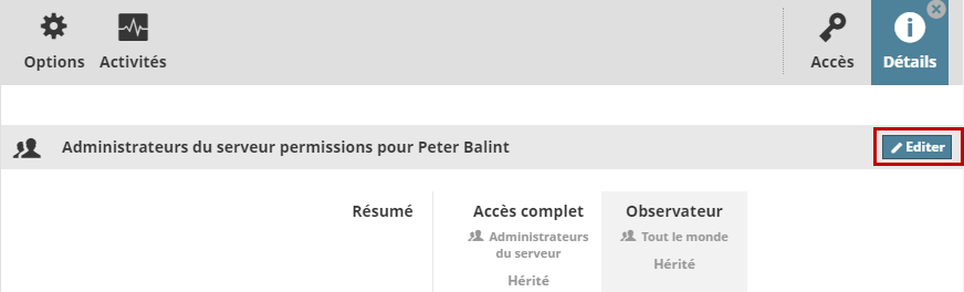 Dans la vue Détails d'un utilisateur ou d'un groupe :