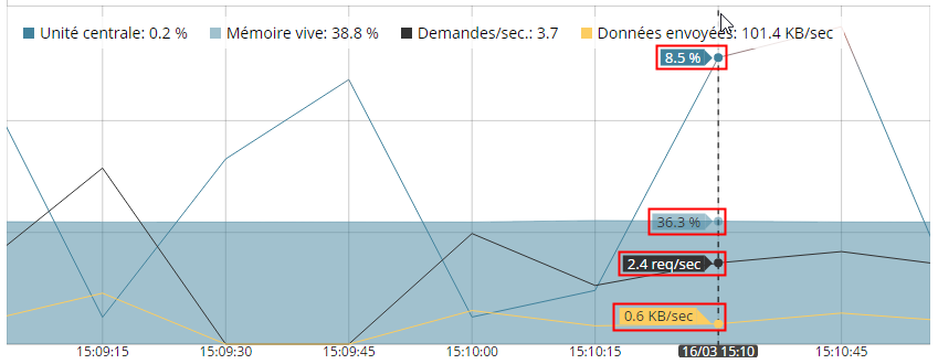 Placez le curseur sur un point du graphique pour voir les données d'un moment spécifique.