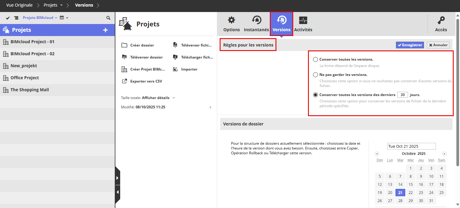 Mémoriser et retrouver les versions précédentes des fichiers sur BIMcloud
