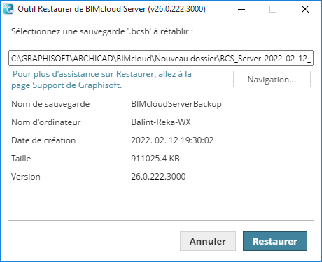 Comment rétablir une sauvegarde pour le BIMcloud Server ou Manager