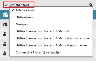 - Licence(s) : l'icône indique le type de licence de cet utilisateur :