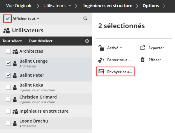Envoyer un courriel à des utilisateurs de BIMcloud sélectionnés