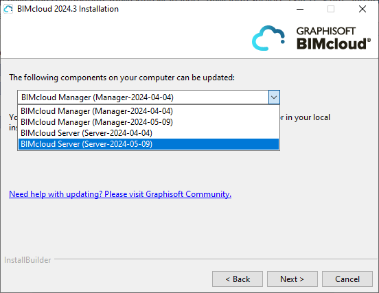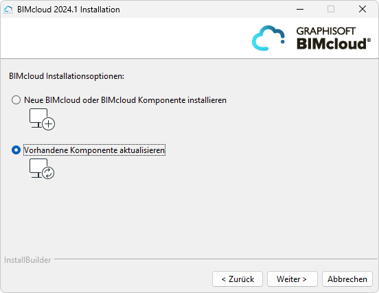 Aktualisieren von Komponenten mithilfe des BIMcloud Installationsprogramms