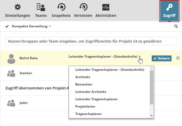 Wann Sie einem Nutzer im Paneel Zugriff gewähren, bringt er diese Standardrolle mit, es sei denn, Sie weisen ihm eine andere Rolle zu.