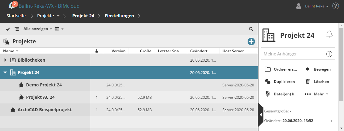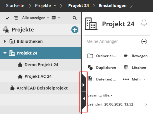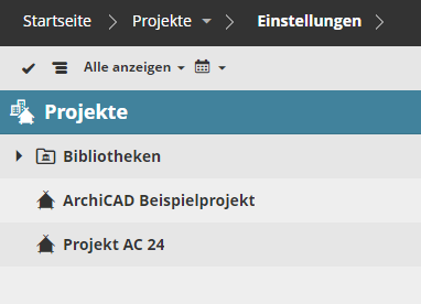 Gehen Sie in der Listenansicht der Projekt-Seite des BIMcloud Manager wie folgt vor: