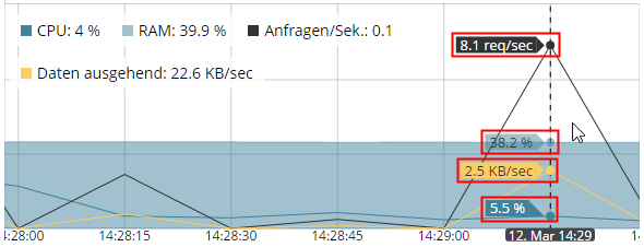 Die ausgewählten Datentypen werden im Diagramm in einem grafischen Format angezeigt sowie als Werte oben im Diagramm.