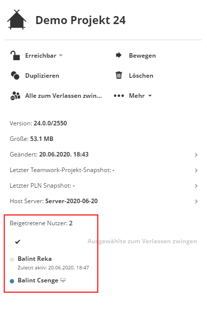 Sehen Sie, wer derzeit einem Teamwork-Projekt beigetreten ist