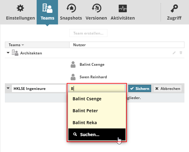 Einrichten eines Teams für ein BIMcloud-Projekt