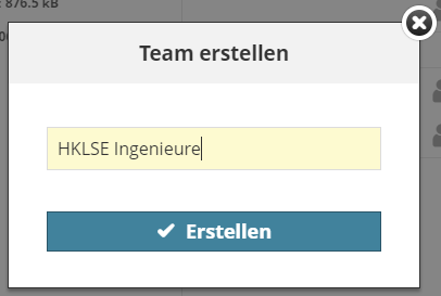 - Geben Sie einen Teamnamen ein (z. B. “HKLSE-Ingenieure”) und klicken Sie anschließend auf Erstellen.
