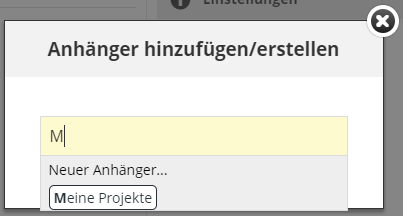 Das Dialogfenster Anhänger hinzufügen/erstellen wird angezeigt. Führen Sie eine der folgenden Aktionen aus: