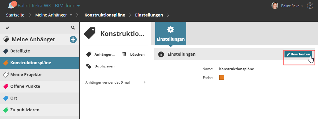 Den Namen oder die Farbe des Anhängers bearbeiten: