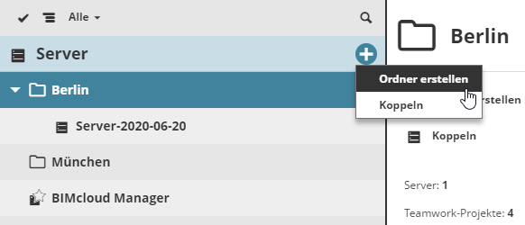 Verwenden Sie Ordner, um Server auf Ihrer BIMcloud zu organisieren