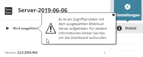 Die Benachrichtigungen werden auch in den Popups in den relevanten Teilen des BIMcloud Managers angezeigt: