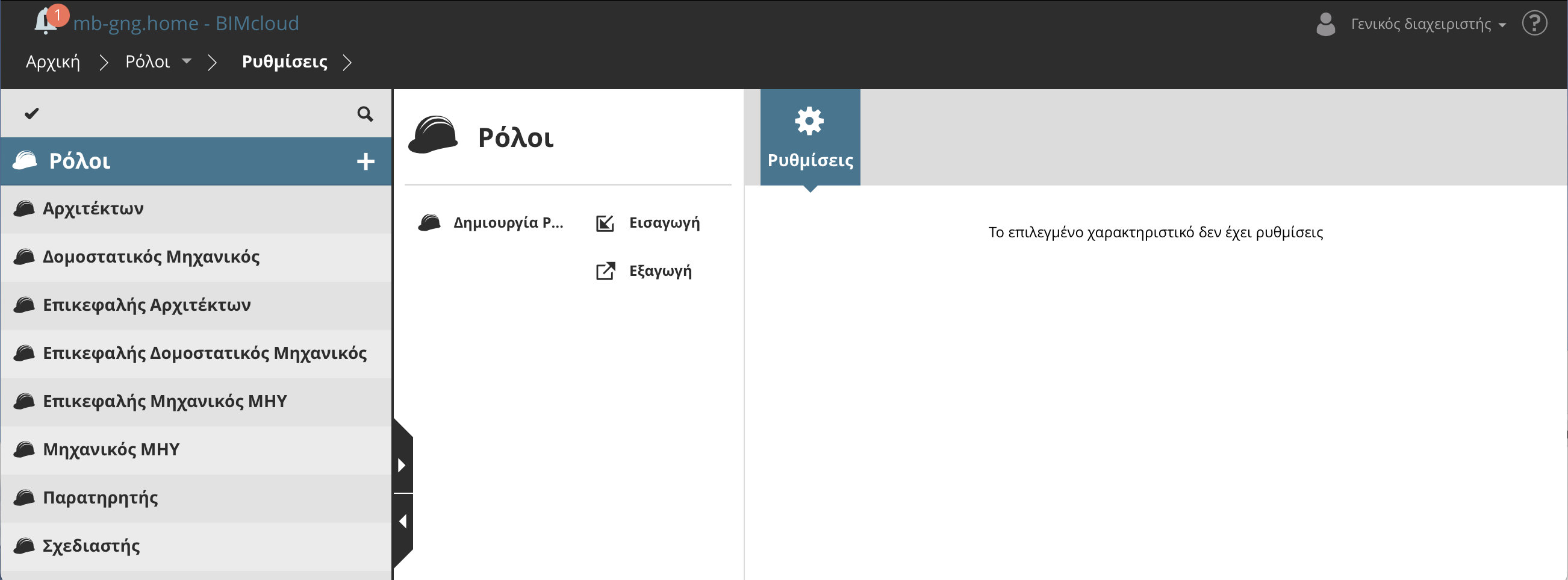 Ρόλοι είναι ένα σύνολο δικαιωμάτων, που περιγράφουν τις ενέργειες που μπορεί να κάνει ο κάτοχος του ρόλου σε συγκεκριμένους τύπους στοιχείων ή δεδομένων, στον BIMcloud Manager ή στις TW Μελέτες Archicad.
