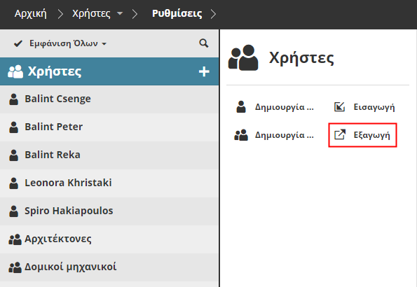 Εξαγωγή χρηστών
