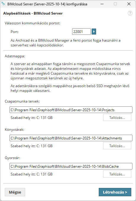 - Fájlok tárolása: A BIMcloud Managerre feltöltött fájlok erre a helyre kerülnek.