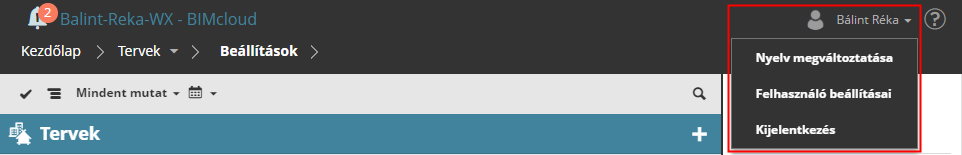 Az oldal jobb szélén található Súgó hivatkozással a BIMcloud súgója nyitható meg.