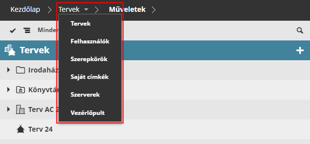 Váltás a BIMcloud tartalomoldalak között