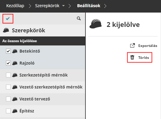 Jelöljön ki egy vagy több törölni kívánt szerepkört.