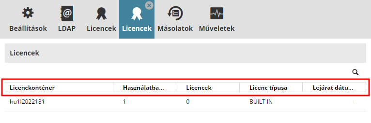 Felhasználói licenc hozzárendelése és visszavonása a Felhasználó beállításainál (Felhasználók oldal) is lehetséges.