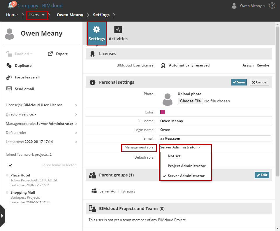 Go to the Users page of BIMcloud Manager.