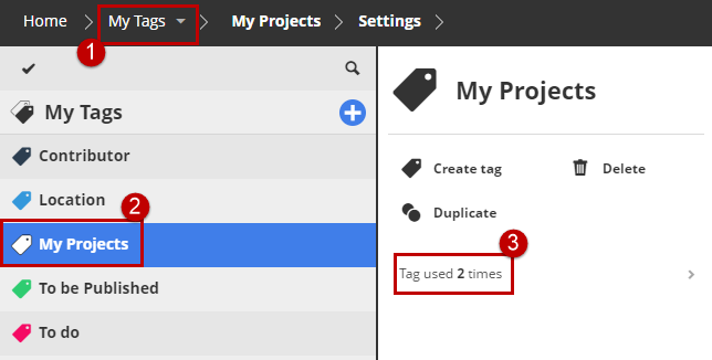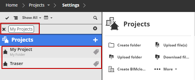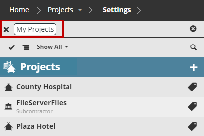Select the tag you want to filter for (e.g. “My Projects”).