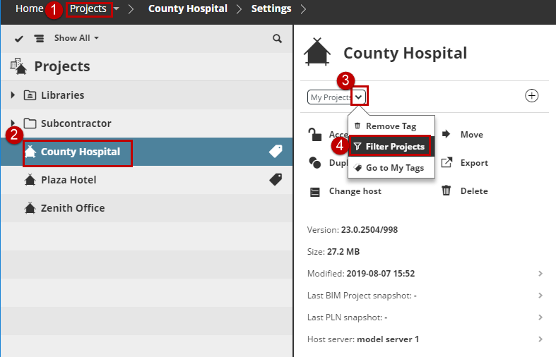 Use tags to filter and locate project items in BIMcloud Manager