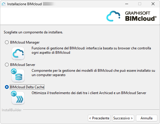 La configurazione del BIMcloud Delta Cache ha luogo dopo che si è installato un nuovo BIMcloud Delta Cache.