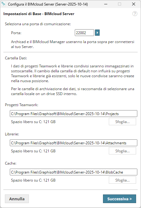 - I progetti e le librerie di Teamwork su questo BIMcloud Server verranno archiviati in queste cartelle