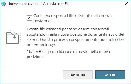 A questo punto, si può decidere se mantenere i file esistenti (spostandoli nella nuova posizione), oppure eliminarli.