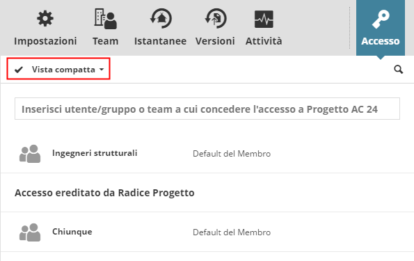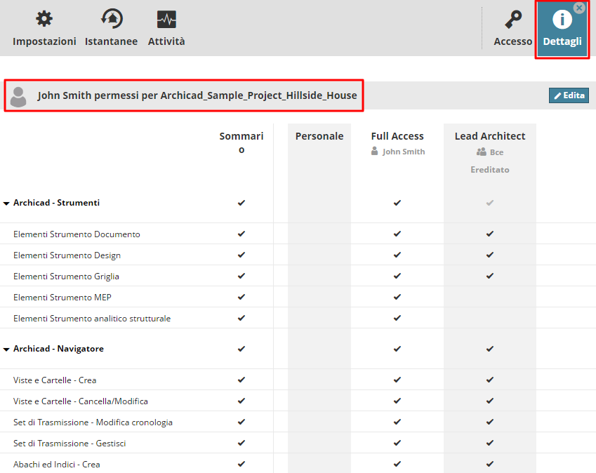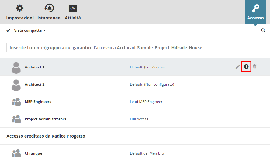 Visualizzare chi ha accesso a ciascun elemento di contenuto sul BIMcloud Manager