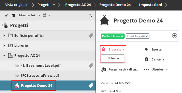 Mentre un progetto è bloccato, gli utenti uniti non possono inviare/ricevere modifiche o apportare modifiche ai dati del progetto.