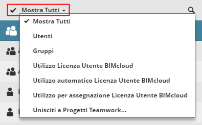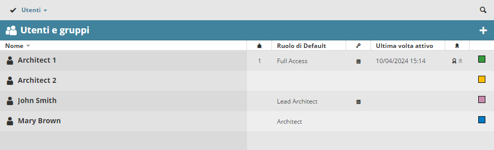 - Licenza/e: l'icona indica il tipo di licenza utilizzata da questo utente: