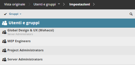 Per la pagina Utenti e gruppi non è presente l'opzione “Vista Albero” ma solo un elenco semplice.