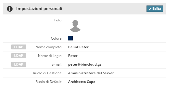 I campi importati dai server LDAP sono contrassegnati da un'etichetta LDAP. Tali parametri non possono essere modificati qui.