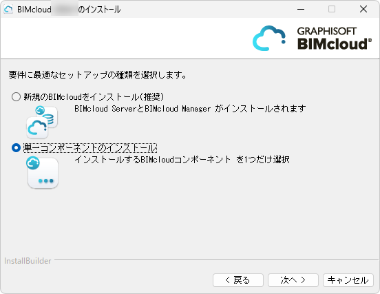 [単一コンポーネントのインストール]を選択し、[次へ]をクリックします。
