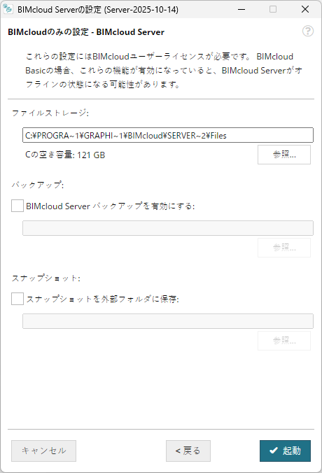 - [次へ]をクリックして[BIMcloudのみの設定 - BIMcloud Server]を開きます。