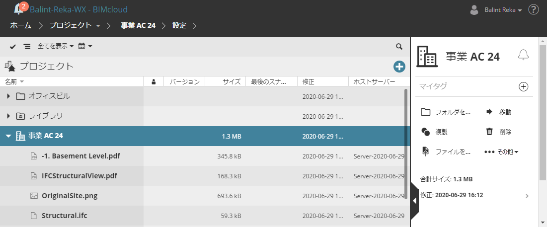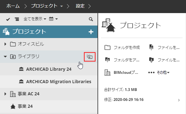 BIMcloud Managerの[プロジェクト]ページにあるリストビューで、次のように操作してください:
