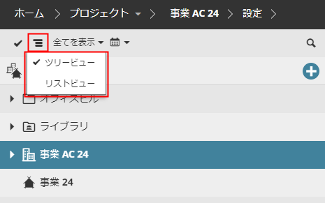 [プロジェクト]および[サーバー]ページで、階層ツリービューまたはフラットリストで項目を表示します。