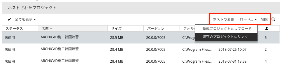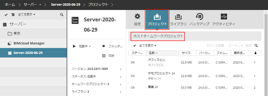 削除:BIMcloud Managerからプロジェクトを削除します
