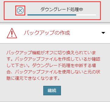 ダウングレード処理を中断するには、ウィザードの上部にあるプログレスバーでXをクリックします。