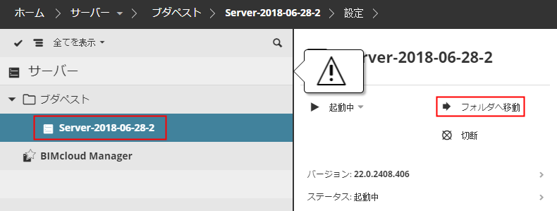 BIMcloud Basicでは、[サーバー]ページでフォルダをサポートしていません。