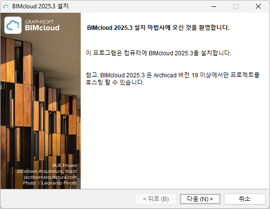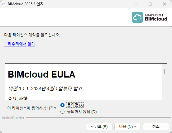 - BIMcloud용 BIMcloud 설치 프로그램을 다운로드하고 시작하세요.