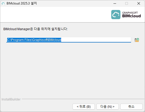BIMcloud Manager의 설치 위치를 선택합니다.