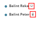 각 사용자 이름 옆의 아이콘은 해당 사용자가 작업하고 있는 유형 또는 클라이언트 애플리케이션을 나타냅니다 (예: Archicad 또는 모바일 BIMx 애플리케이션).