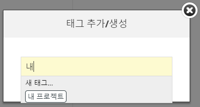 원하는 태그가 아래 목록에 나타날 때까지 기존 태그의 이름 (예: "내 프로젝트")을 입력하기 시작합니다. 클릭하여 할당합니다.