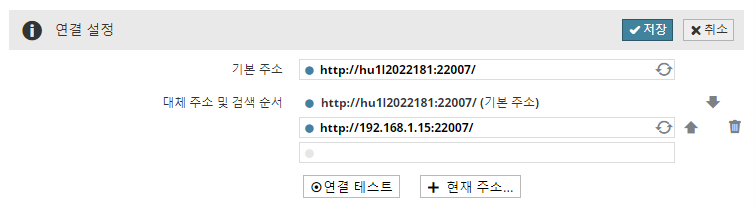 위/아래 화살표를 사용하여 주소의 탐색 순서를 수정하십시오. 삭제 아이콘을 사용하여 주소를 제거하거나 새로고침 아이콘을 사용하여 다시 테스트할 수 있습니다.