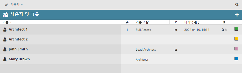 - 라이선스: 이 사용자가 사용한 라이선스의 유형을 나타내는 아이콘: