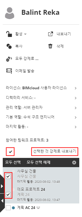 사용자를 강제로 내보내기할 프로젝트(들)을 체크합니다.